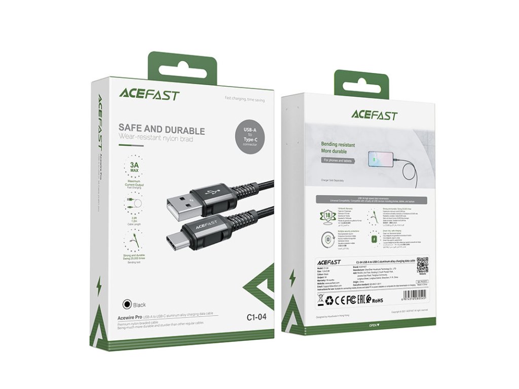 Acefast C1-04 kabel USB - USB-C / 1,2m / 3A - černý.