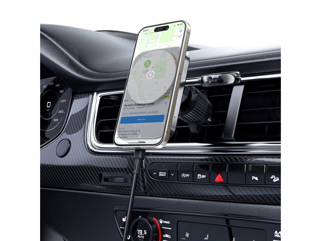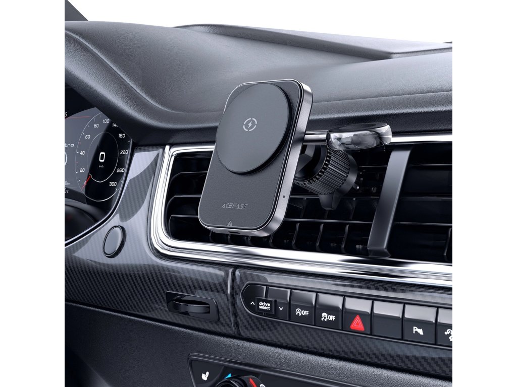 Acefast D18 MagSafe držák do auta s bezdrátovým dobíjením + nabíjení hodinek, umístění do mřížky ventilátoru.
