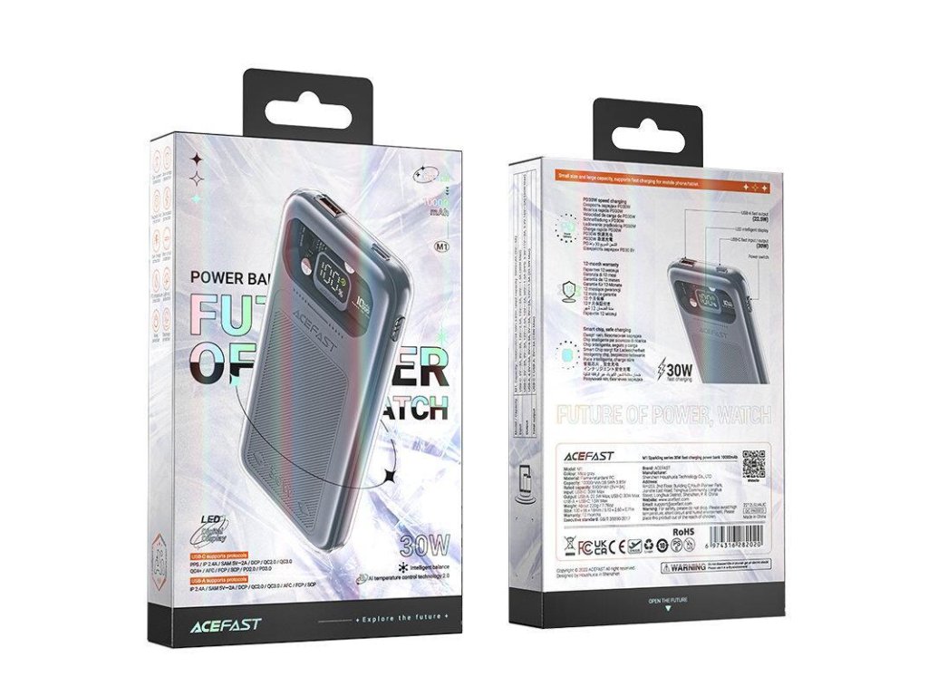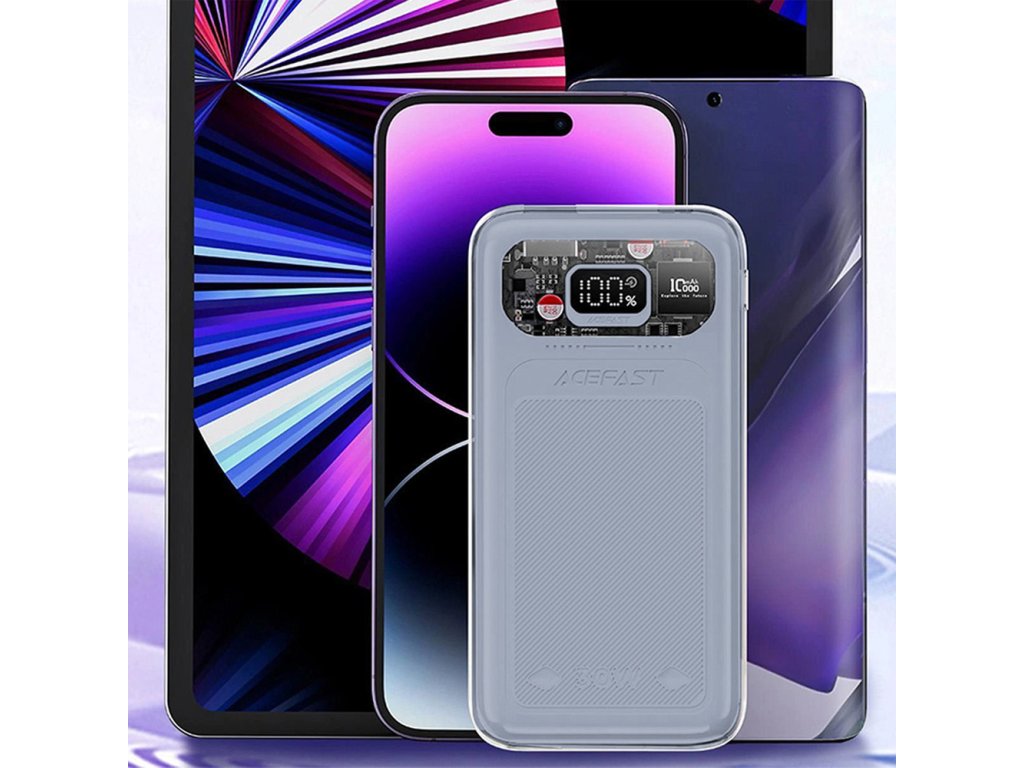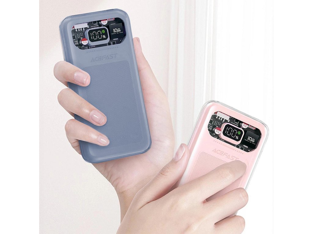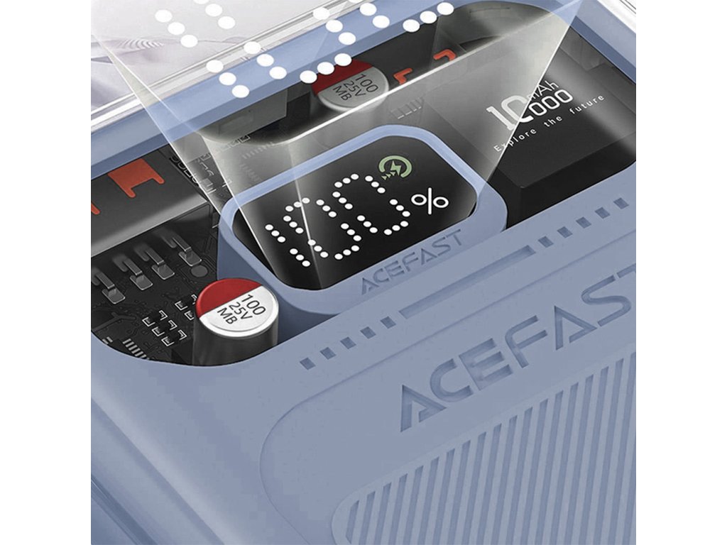 Stylová a výkonná powerbanka Acefast M1 Sparkling Series s kapacitou 10000 mAh je ideální volbou pro každého, kdo hledá rychlé nabíjení, dostatečnou kapacitu a moderní design. Díky portům USB-C a USB-A je kompatibilní s širokou škálou zařízení, jako jsou mobilní telefony, tablety, některé notebooky nebo herní konzole.