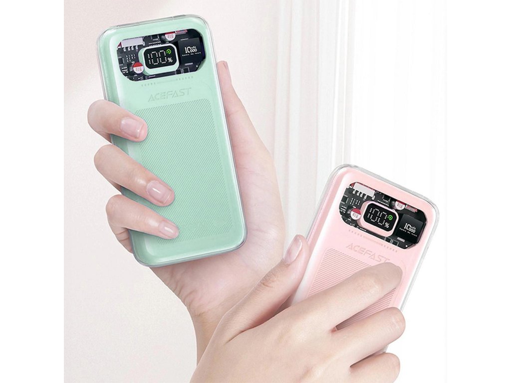 Stylová a výkonná powerbanka Acefast M1 Sparkling Series s kapacitou 10000 mAh je ideální volbou pro každého, kdo hledá rychlé nabíjení, dostatečnou kapacitu a moderní design. Díky portům USB-C a USB-A je kompatibilní s širokou škálou zařízení, jako jsou mobilní telefony, tablety, některé notebooky nebo herní konzole.