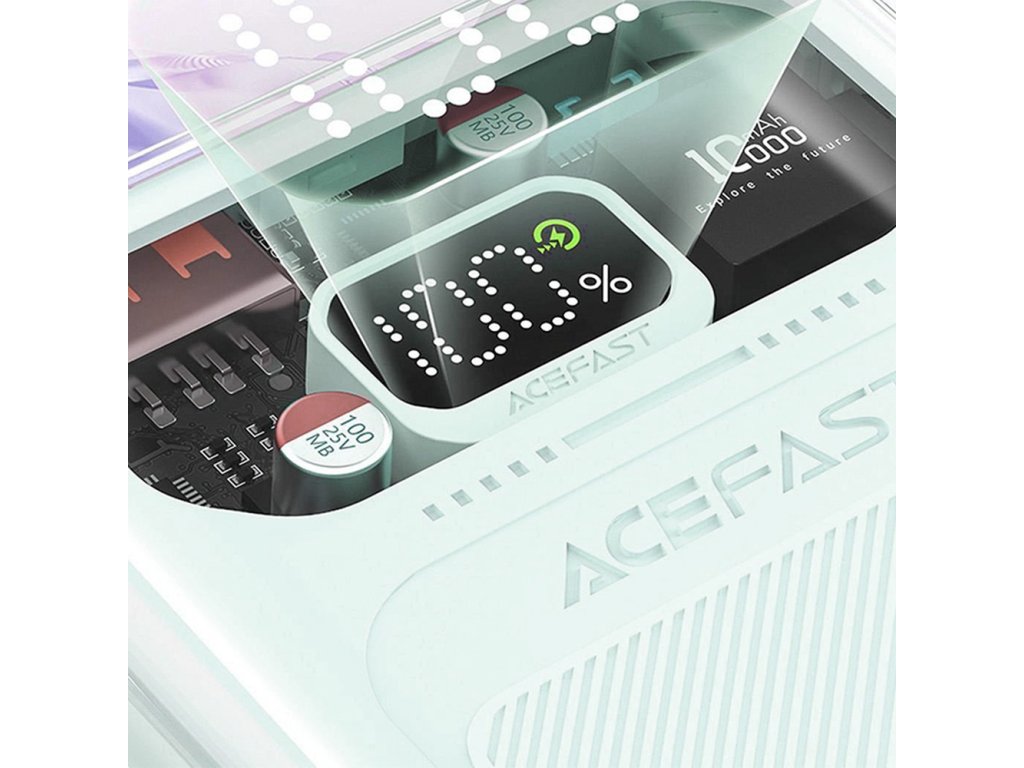 Acefast M1 powerbanka 30W / 10000mAh / USB-C + USB-A / LED displej - zelená.