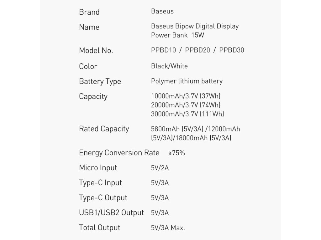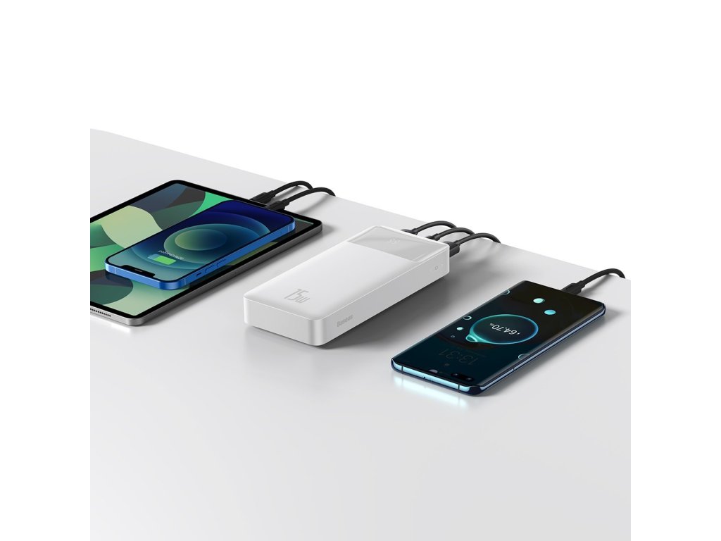Baseus Bipow Powerbanka 20000mAh / 15W / 2x USB / USB-C / Micro USB bílá PPBD050102