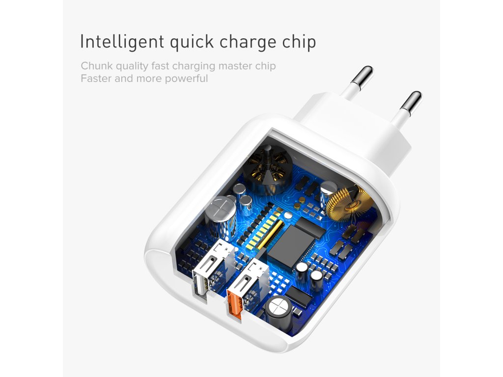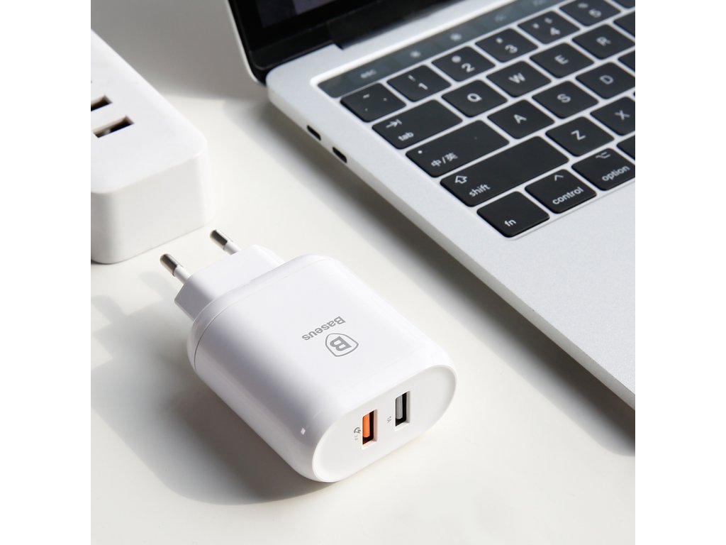 Baseus Bojure nabíječka s 2 porty USB - USB 2.0 a USB QC 3.0. - můžete nabíjet 2 zařízení současně.
