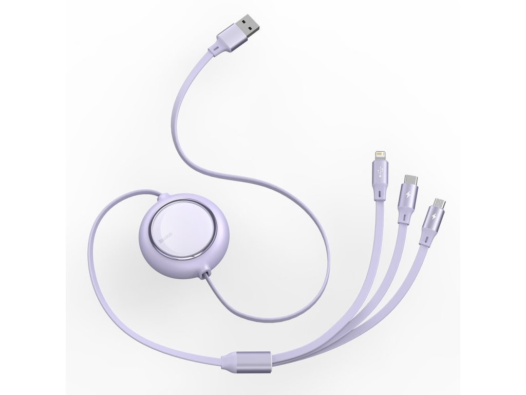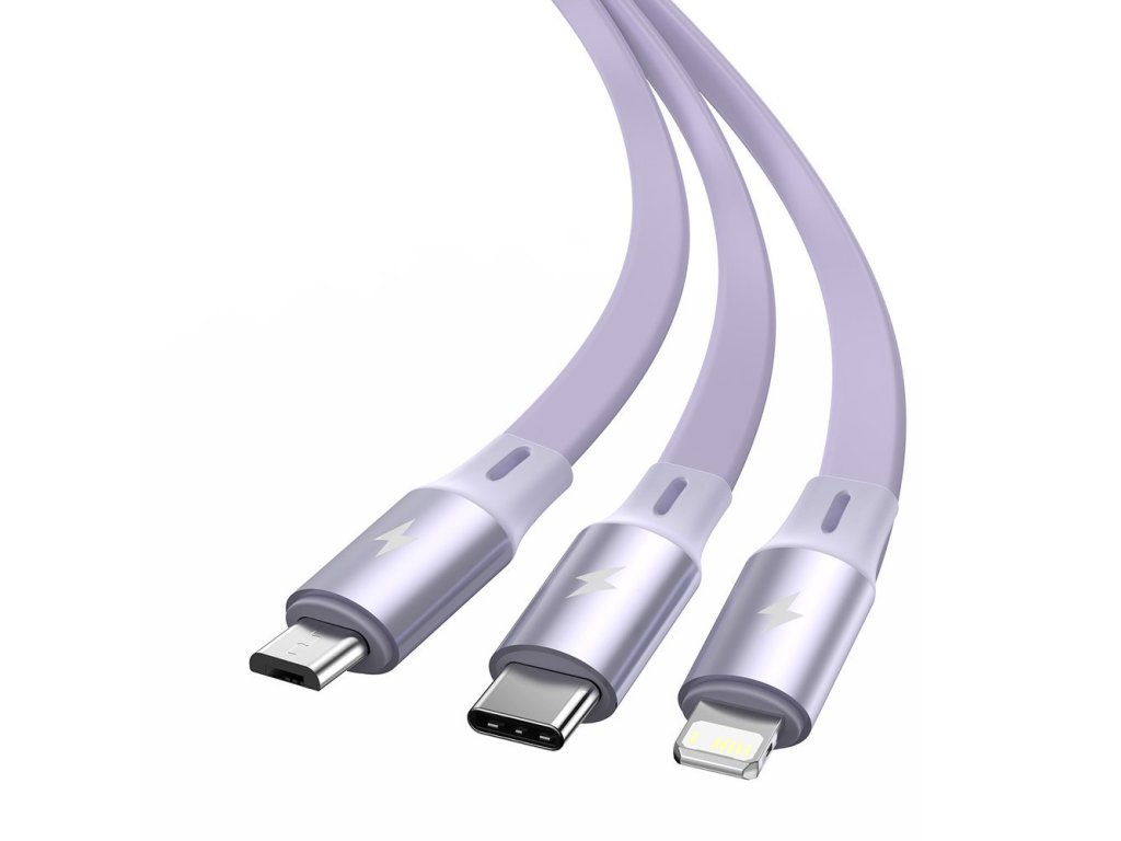Baseus Bright Mirror USB kabel 3v1 Micro USB / USB-C / Apple Lightning / 1,2m/3,5A violet