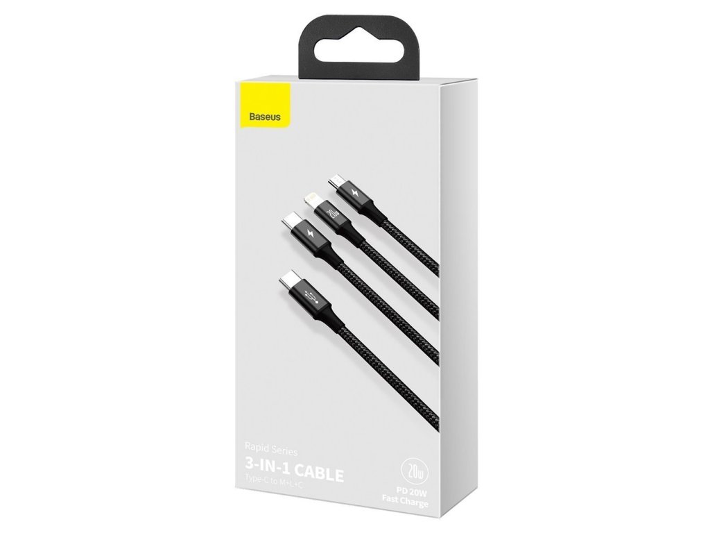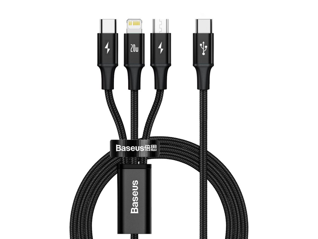 Baseus CAMLT-SC01 USB-C PD kabel 3v1 Micro USB / USB-C / Apple Lightning 1,5m / 20W - černý.