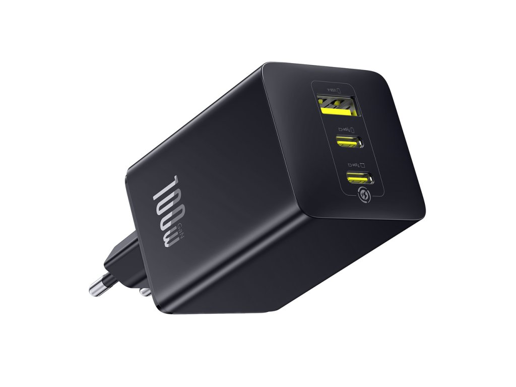 - Tři porty v jednom zařízení: dva USB-C a jeden USB-A umožňují nabíjení několika zařízení současně.
