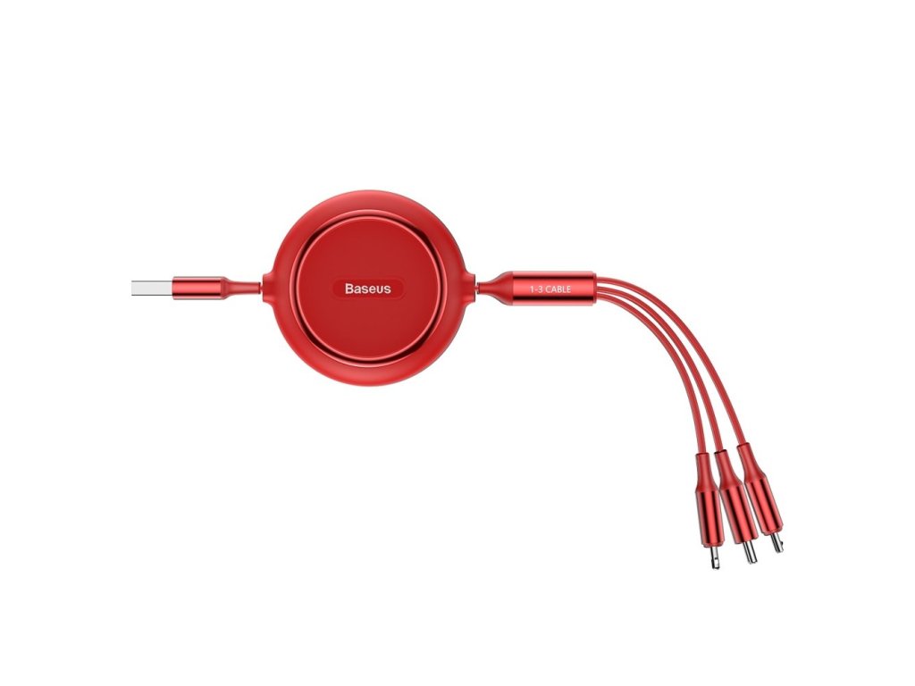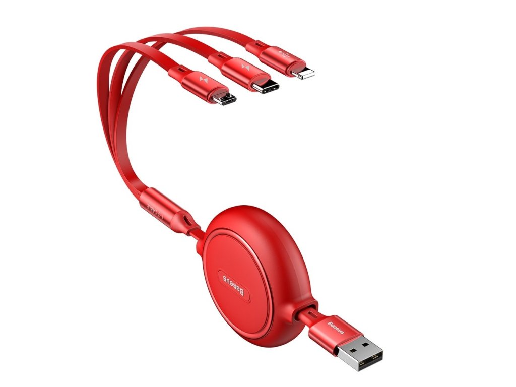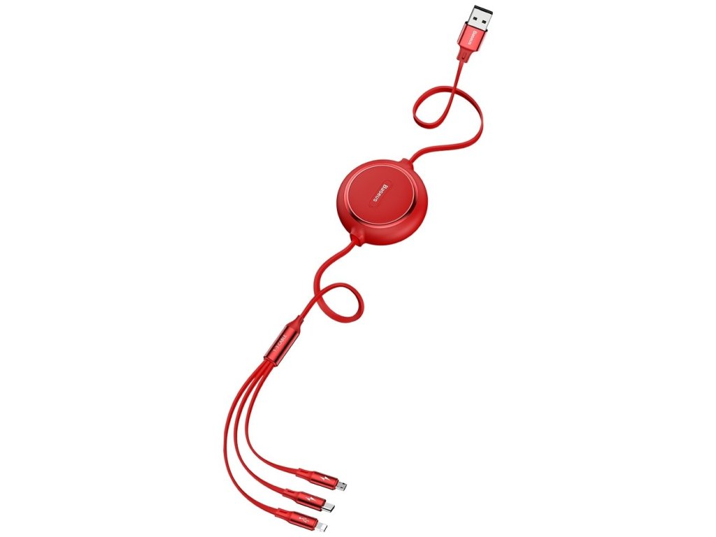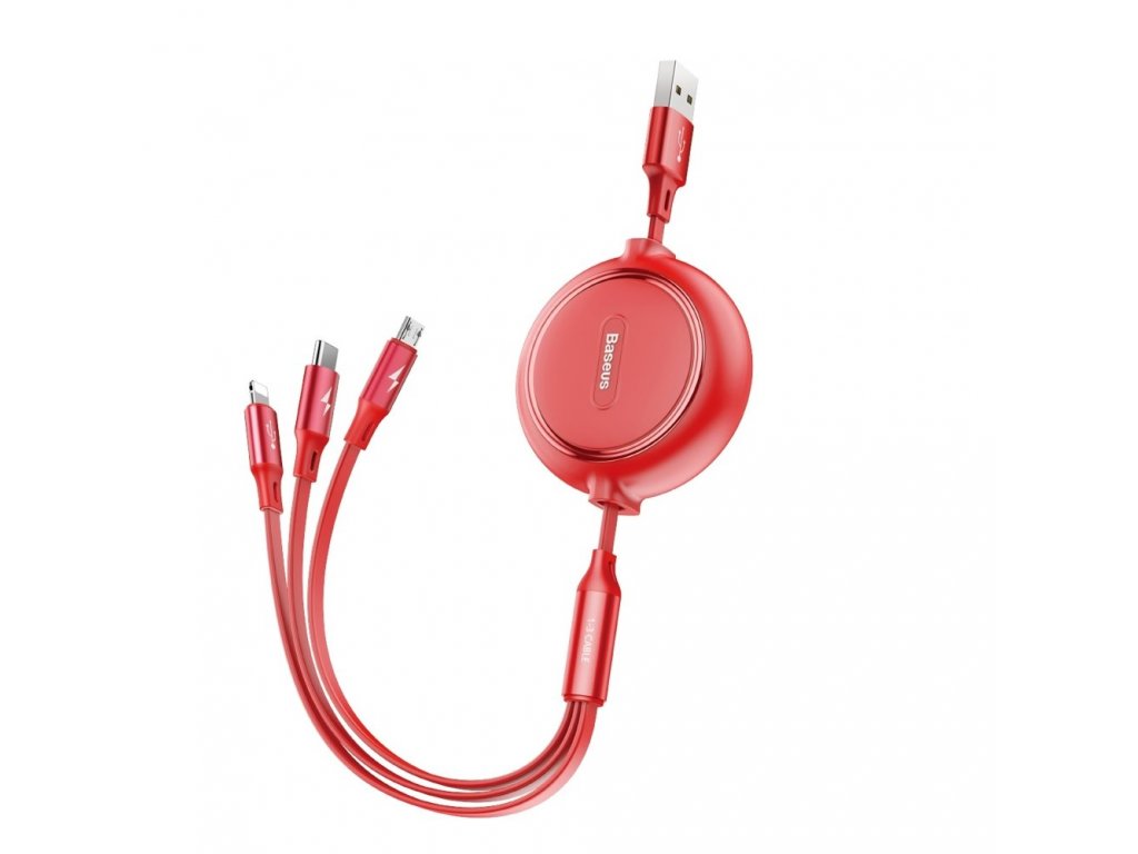 Baseus Golden Loop USB datový kabel 3v1 Micro USB / USB-C / Apple červený CAMLT-JH09
