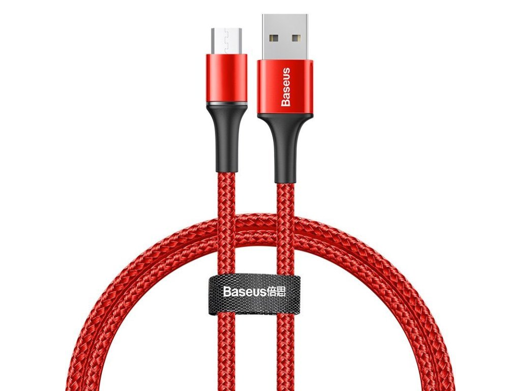 Baseus Halo svítící USB kabel - Micro USB / 1m / 3A červený CAMGH-B09