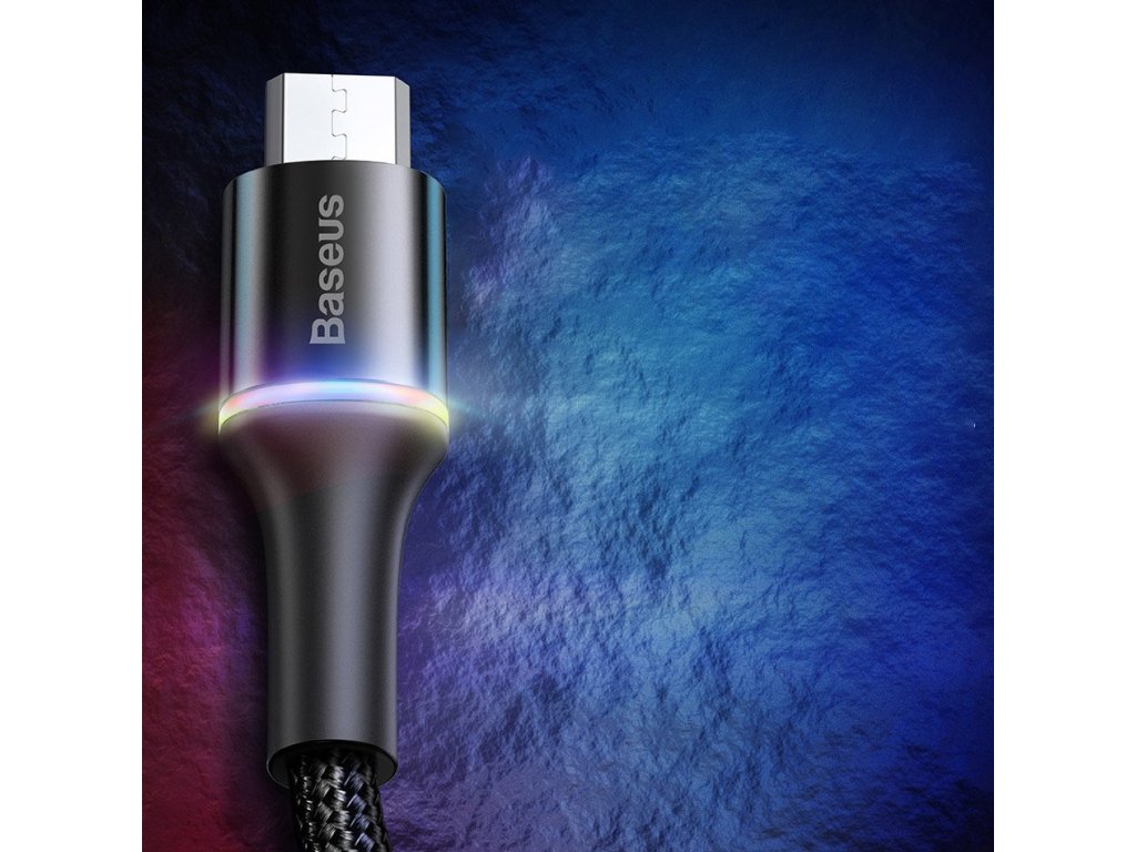 Baseu Halo datový a dobíjecí kabel s koncovkou micro USB vás bude bavit, v noci ho neztratíte a proti zlomení je chráněn perfektně. Měděné vodiče zprostředkují rychlé a bezpečené nabíjení. Hliníkové koncovky nepodléhají oxicaci a nylonový potah zamezuje kroucení a polámání.