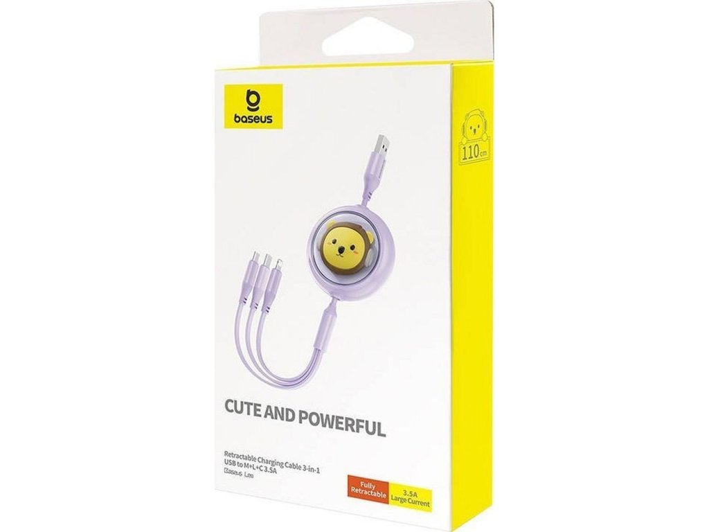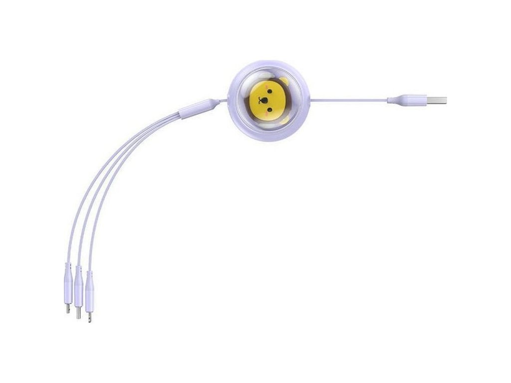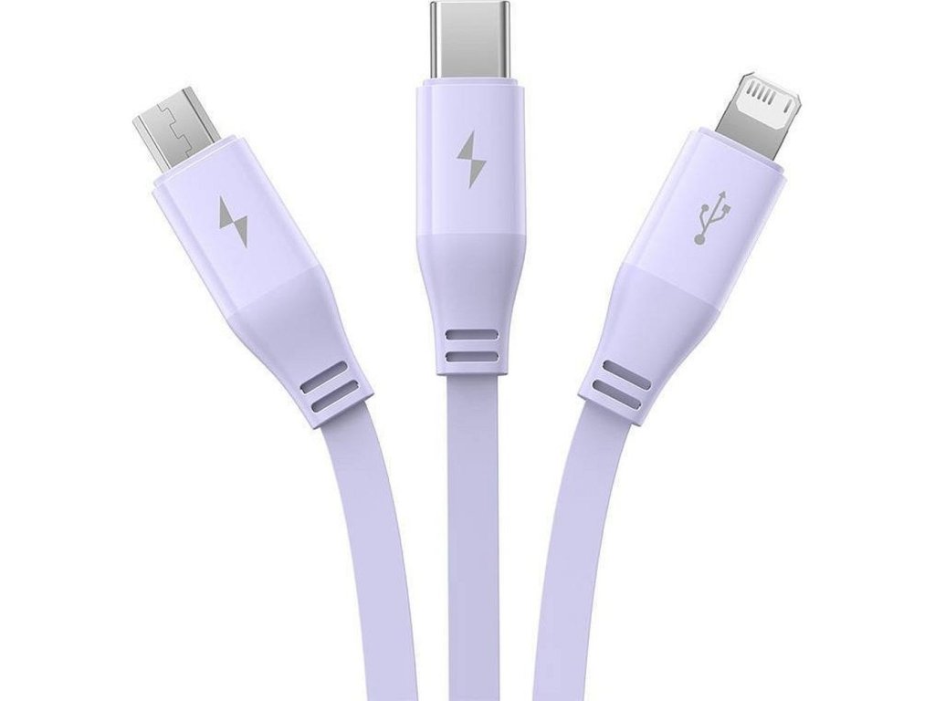 Baseus Leo svinovací kabel 3v1 USB-C / Apple / Micro USB / USB-C / 3,5A / 1,1m - fialový.