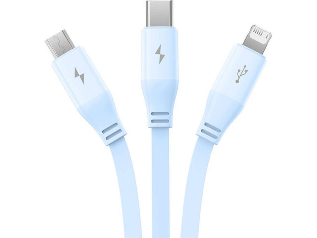 Baseus Leo svinovací kabel 3v1 USB-C / Apple / Micro USB / USB-C / 3,5A / 1,1m - modrý.