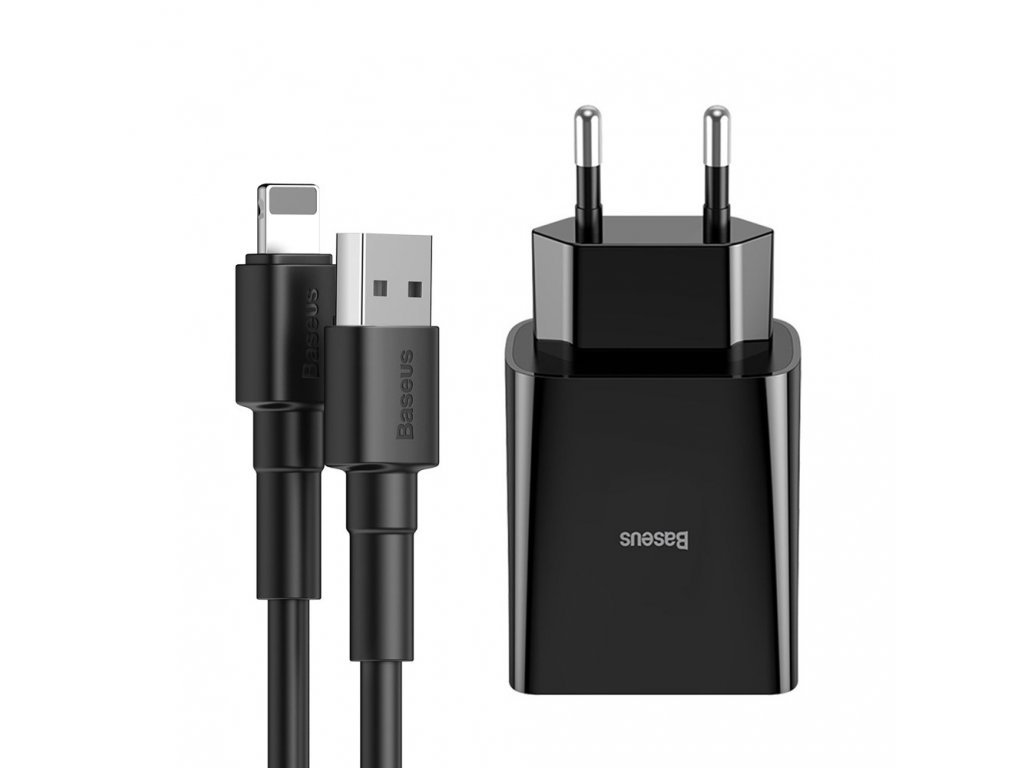 Baseus inteligentní nabíječka s kabelem pro iPhone - černá.
