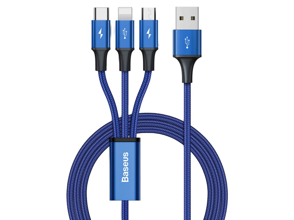 Baseus Rapid USB kabel 3v1 Apple Lightning / Micro USB / USB-C 1,2m / 3A modrý