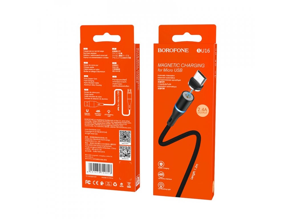 Borofone BU16 magnetický USB kabel - Micro USB 1,2m / 2,4A černý