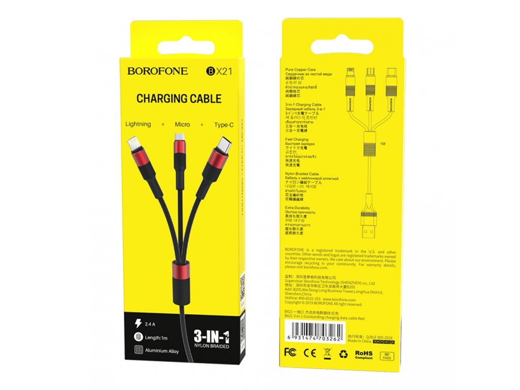 Borofone BX21 USB kabel 3v1 - iPhone lightning / USB-C / Micro USB 1m / 2,4A červený