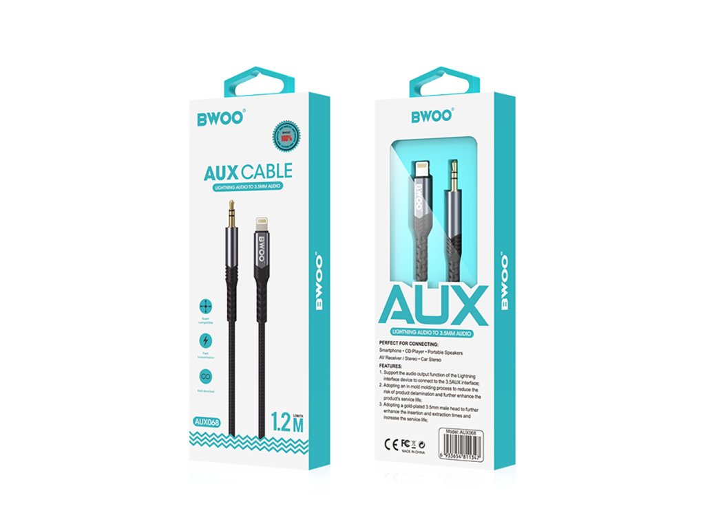 BWOO BO-AUX068 Aux kabel - Apple Lightning / 3,5mm jack / 1,2m - černý.