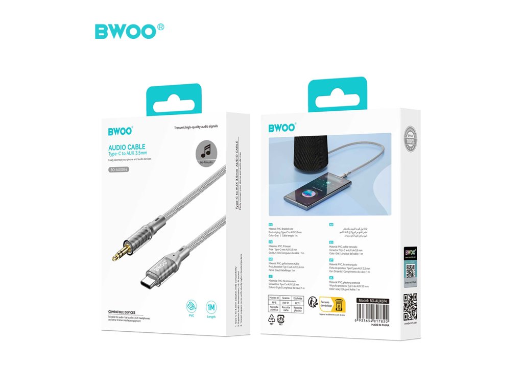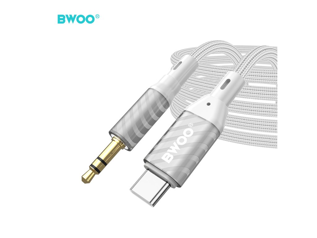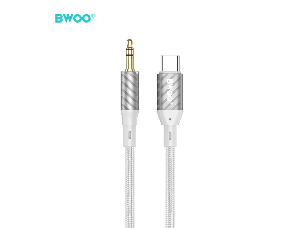 BWOO BO-AUX074 Aux kabel - USB-C / 3,5mm jack / 1m / opletený / šedý