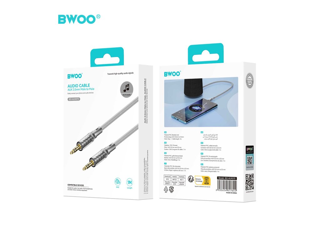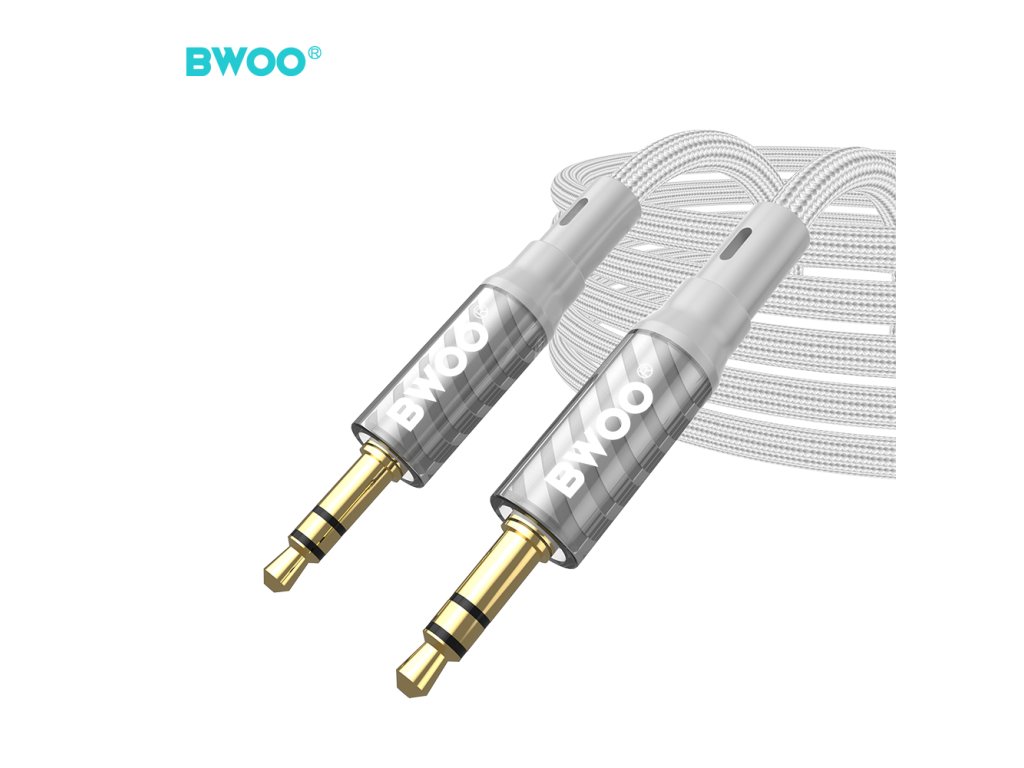 BWOO BO-AUX075 Aux kabel - 3,5mm / 3,5mm jack / 1m / opletený - šedý.