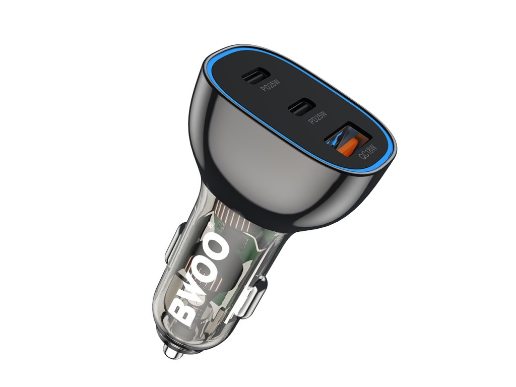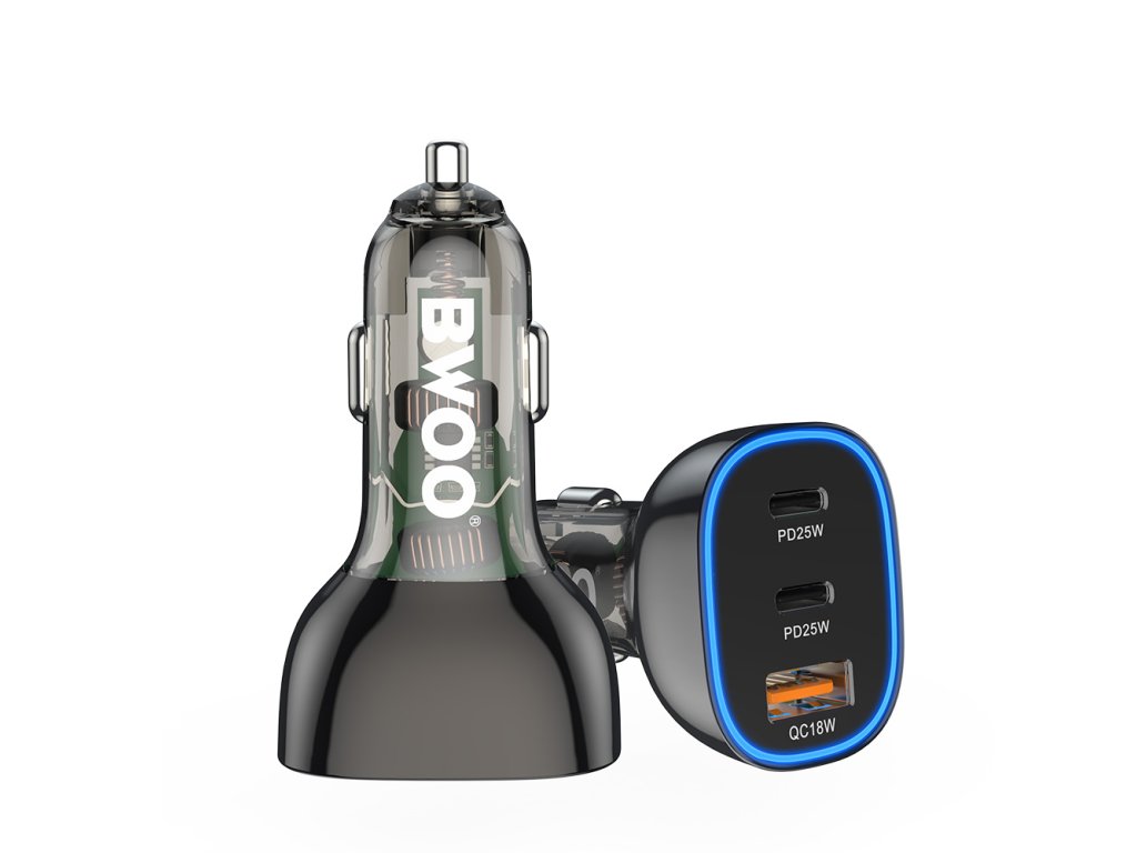 BWOO BO-CC96 rychlonabíječka do auta s výstupem 2x USB-C PD 25W + USB-A QC 18W.