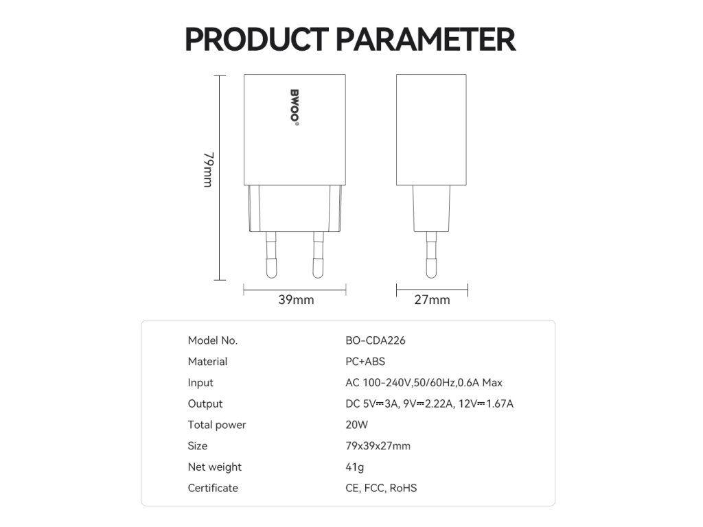 BWOO jako renomovaný výrobce klade důraz na bezpečnost a kvalitu. Nabíječka je vybavena pokročilým ochranným systémem, který inteligentně reguluje výstupní výkon a chrání zařízení před přehřátím, přepětím a přebíjením. Díky tomu je nabíjení nejen rychlé, ale také maximálně bezpečné a šetrné k baterii.