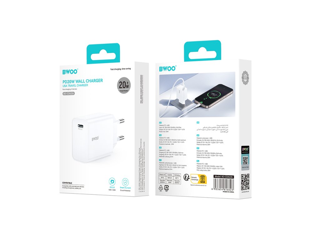 BWOO BO-CDA226 rychlonabíječka s výstupem USB-C PD / 20W / bílá
