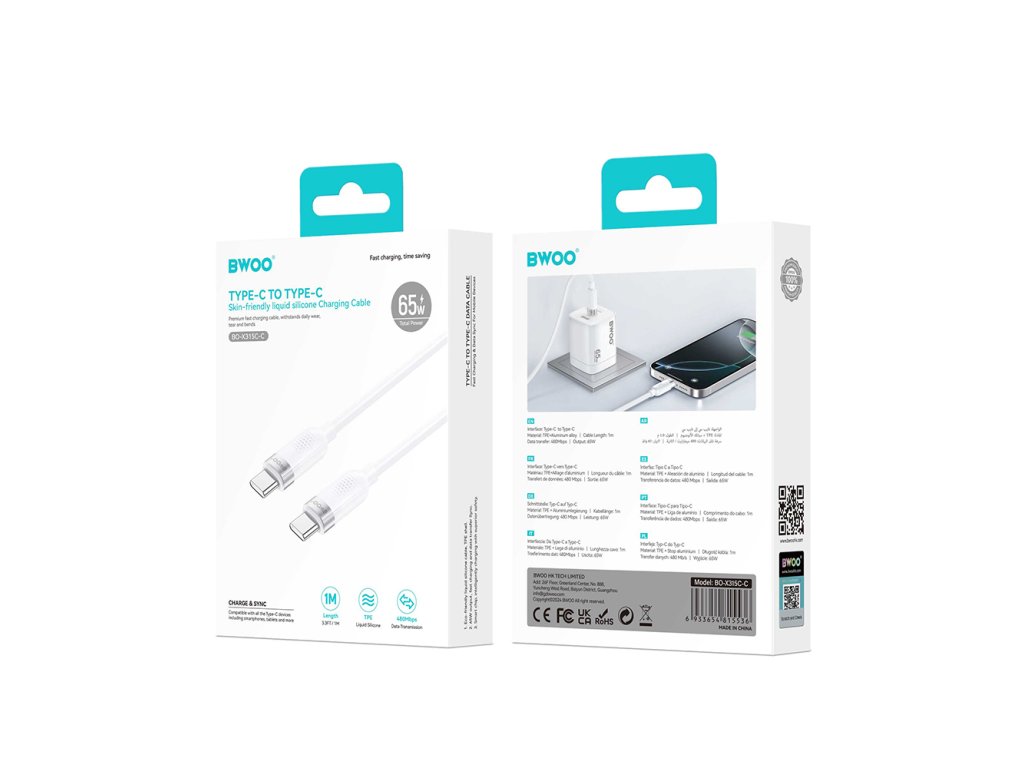 BWOO BO-X315 USB-C PD kabel - USB-C / 1m / 65W / bílý