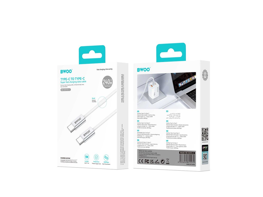 BWOO BO-X317 USB-C PD kabel - USB-C / 1m / 240W / opletený / bílý