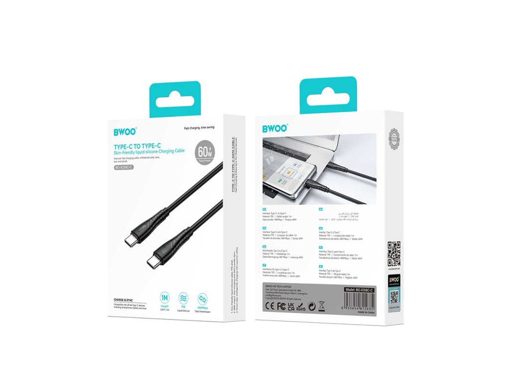 BWOO BO-X318 USB-C PD kabel - USB-C / 1m / 60W / černý.