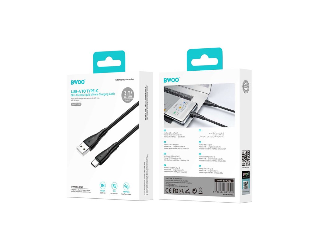 BWOO BO-X318 USB kabel - USB-C / 1m / 3A / černý