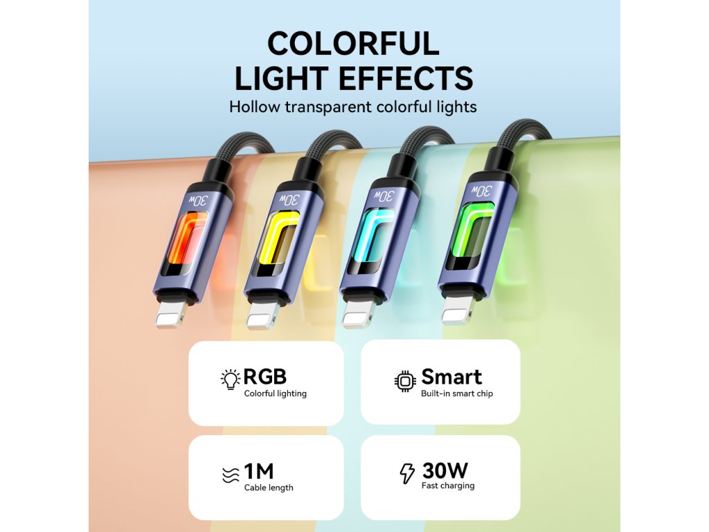 Délka 1 metr poskytuje ideální rovnováhu mezi pohodlím a praktičností, ať už kabel používáte doma, v kanceláři nebo na cestách. Při nabíjení navíc kabel svítí barevným RGB podsvícením, které okamžitě upoutá pozornost. Nejde jen o funkčnost, ale i o moderní design, který kabel výrazně odlišuje od běžných modelů.