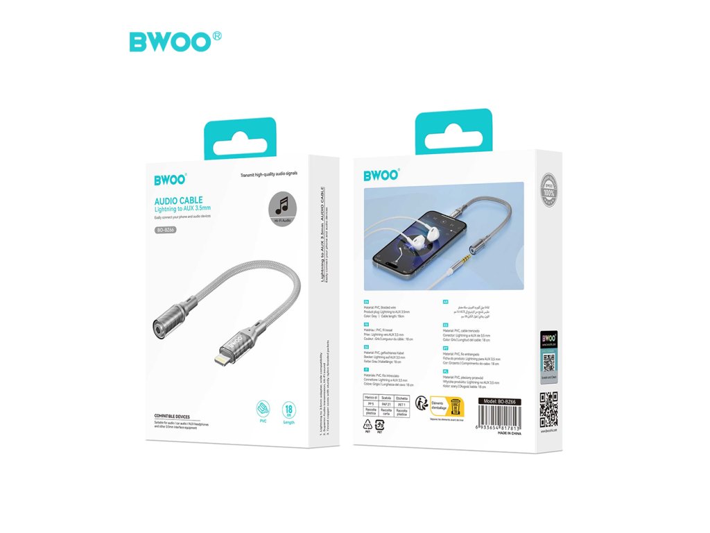 BWOO BZ66 audio adaptér Apple Lightning / 3,5mm jack / šedý