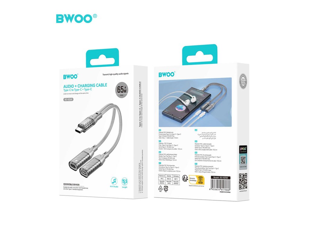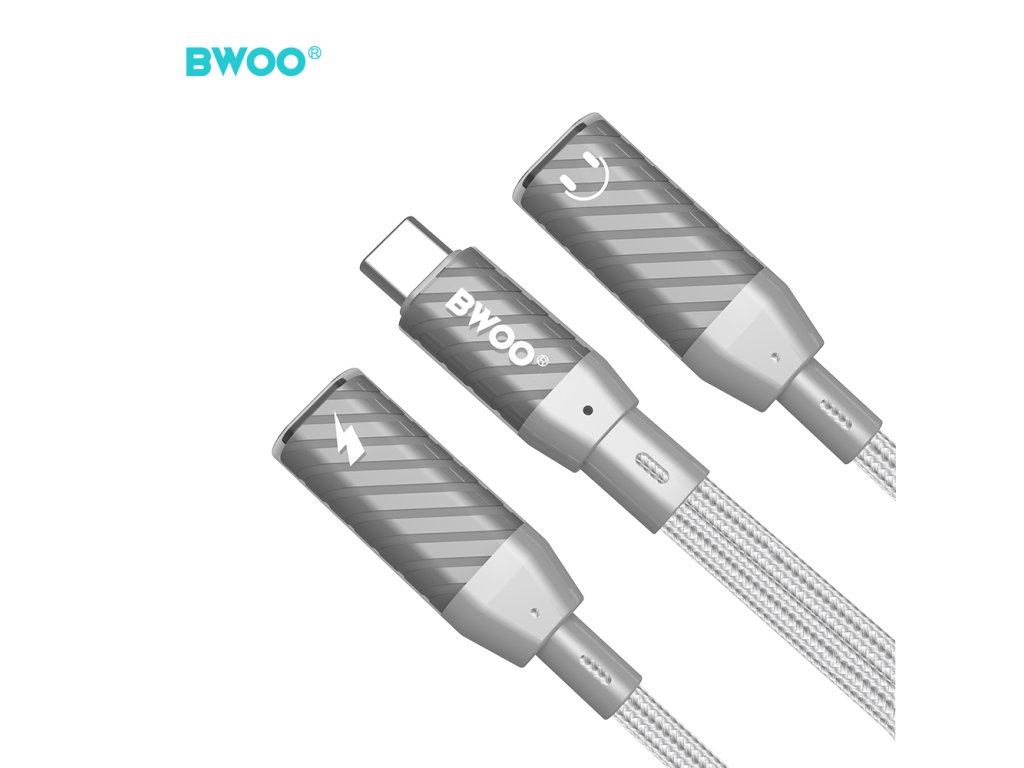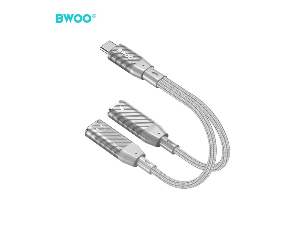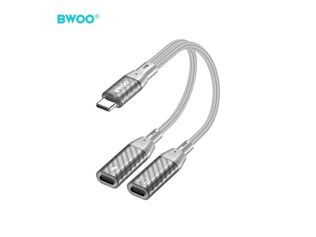 BWOO BZ68 adaptér USB-C / 2x USB-C / rozdvojení / šedý