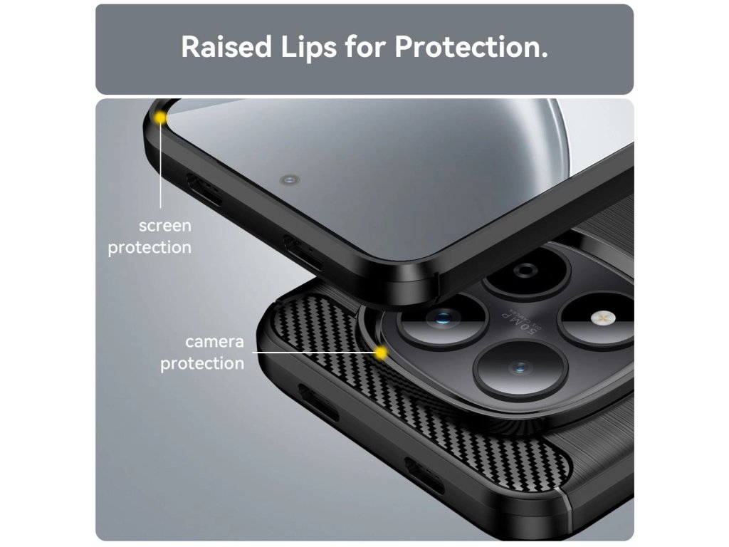 Pouzdro Carbon Case představuje ideální spojení elegantního designu, nízké hmotnosti a spolehlivé ochrany telefonu při každodenním používání i v náročnějších podmínkách. Minimalistický vzhled s karbonovým motivem a povrchem imitujícím broušený hliník dodává zařízení moderní technický charakter a zároveň zajišťuje pohodlný úchop.