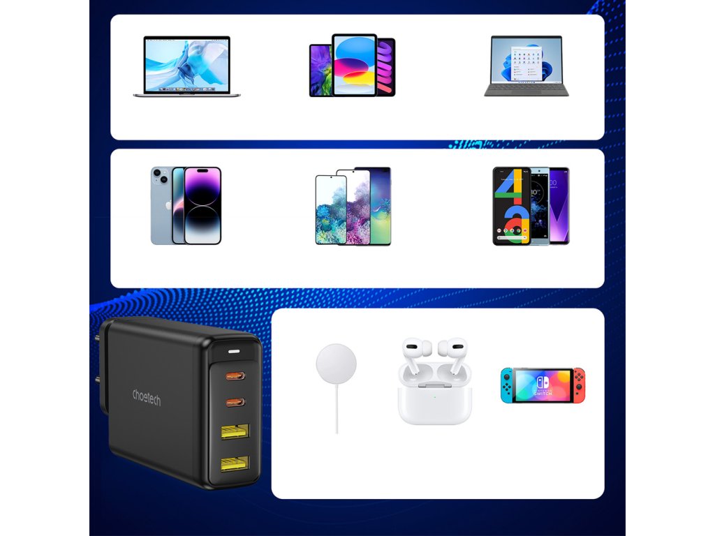 Choetech PD6005 rychlá nabíječka / 2x USB-C / 2x USB-A / 140W / GaN / černá