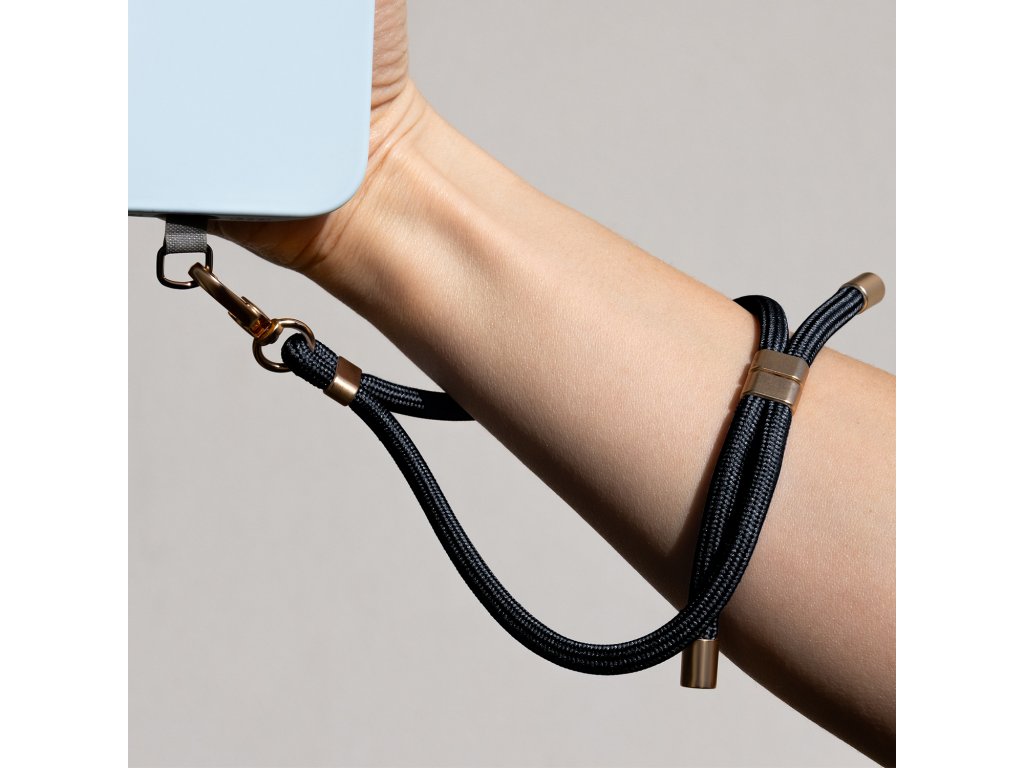 Univerzální šňůrka na zápěstí je praktický způsob, jak nosit telefon, klíče nebo jiné drobné příslušenství, které budete mít vždy po ruce. 6mm silná opletená šňůrka v kombinaci se zlatými detaily dodává poutku moderní a elegantní vzhled, zatímco zlatá kovová karabina umožňuje snadné připevnění k pouzdru, batohu nebo klíčence.