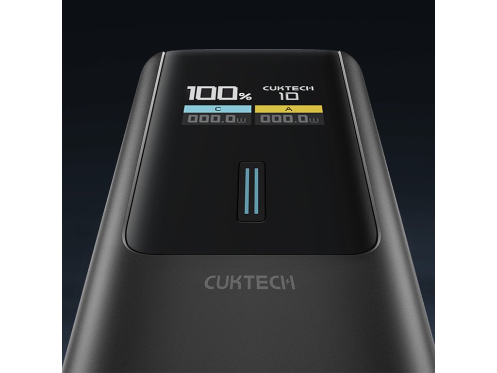 Cuktech CKPB100PGLBL je moderní powerbanka s kapacitou 10 000 mAh a výkonem až 150 W, která umožňuje ultrarychlé nabíjení notebooků, chytrých telefonů a tabletů. S výstupem USB-C až 120 W a výstupem USB-A až 33 W můžete nabíjet i ta nejnáročnější zařízení. Barevný TFT displej zobrazuje v reálném čase klíčové informace o napětí, proudu, úrovni nabití a zbývající době provozu. Powerbanka podporuje rychlé reverzní nabíjení až 90 W, což vám umožní dobít 55 % její kapacity za pouhých 15 minut. Navzdory svým obrovským možnostem zůstává kompaktní a lehká a její ohnivzdorné pouzdro VO265 a devět vrstev ochrany zajišťují naprostou bezpečnost.