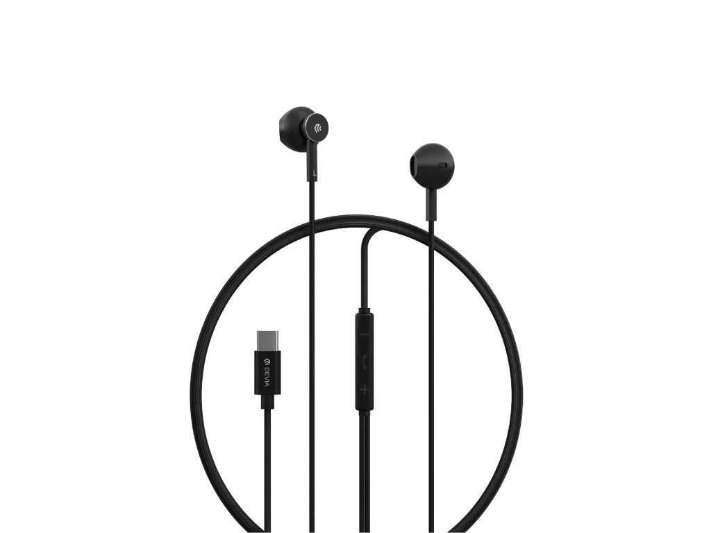 Devia M2 sluchátka s mikrofonem a ovladačem / USB-C / DAC / 1,2m / černé