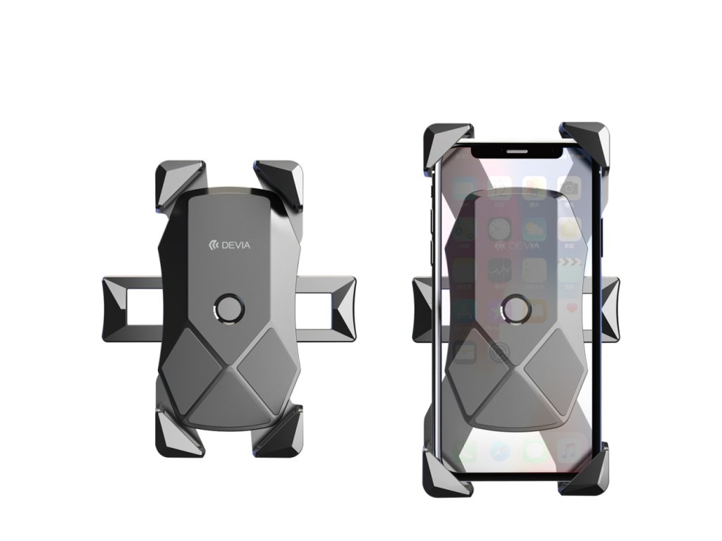 Univerzální držák mobilu na kolo, koloběžku nebo skůtr od renomovaného výrobce Devia. Držák je vhodný pro umístění na řídítka pomocí utahovacího mechanismu. Osvědčený svírací mechanismus pro uchycení mobilu, pevně sevře vložené zařízení.