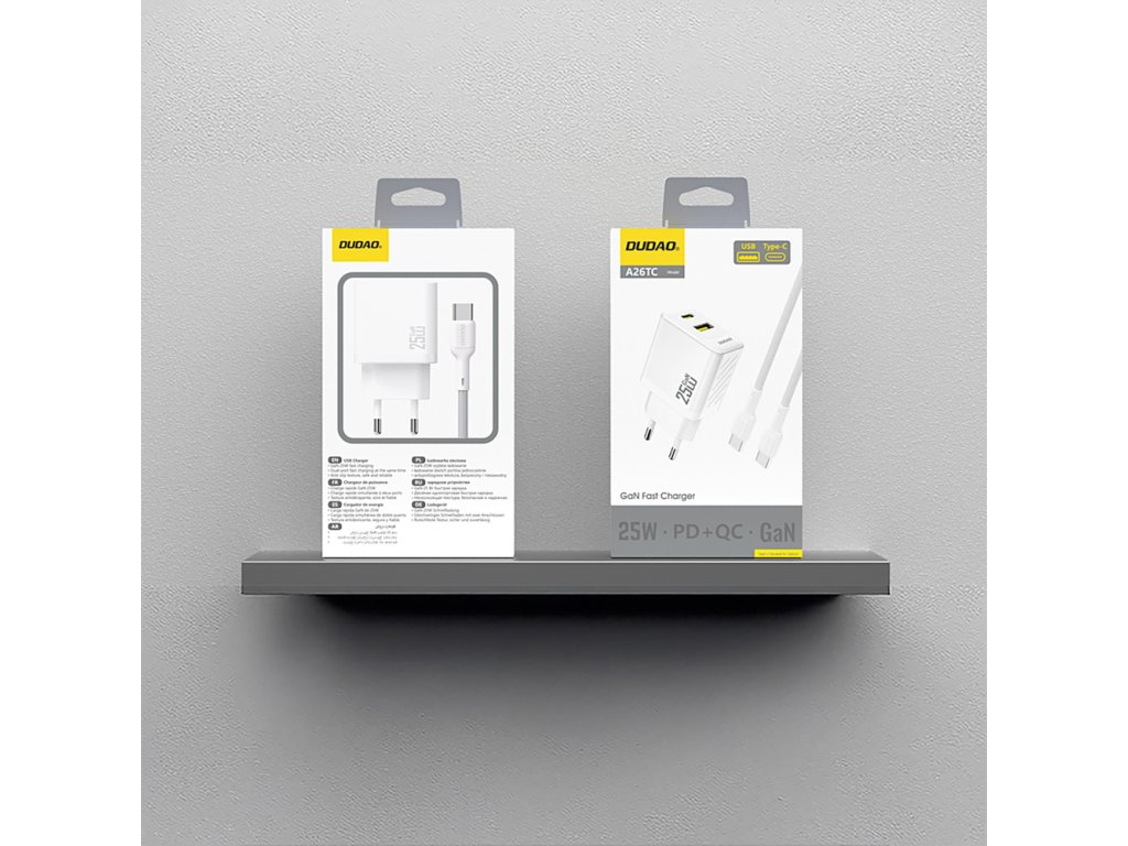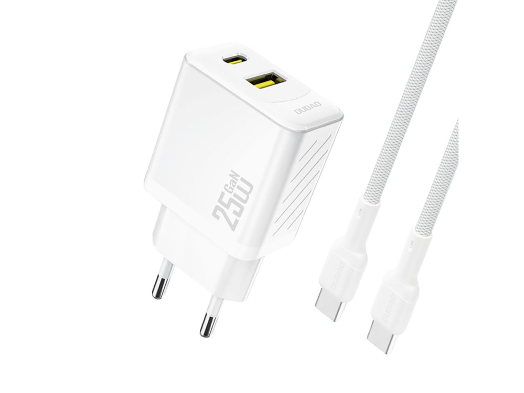 Dudao A26TCEU nabíječka do sítě USB-A + USB-C / PD / 25W + kabel USB-C / USB-C - bílá.