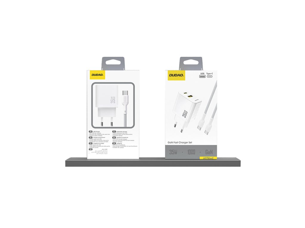 Dudao A27 Max nabíječka do sítě GaN / USB-C PD + USB-A / 35W + kabel USB-C / bílá.