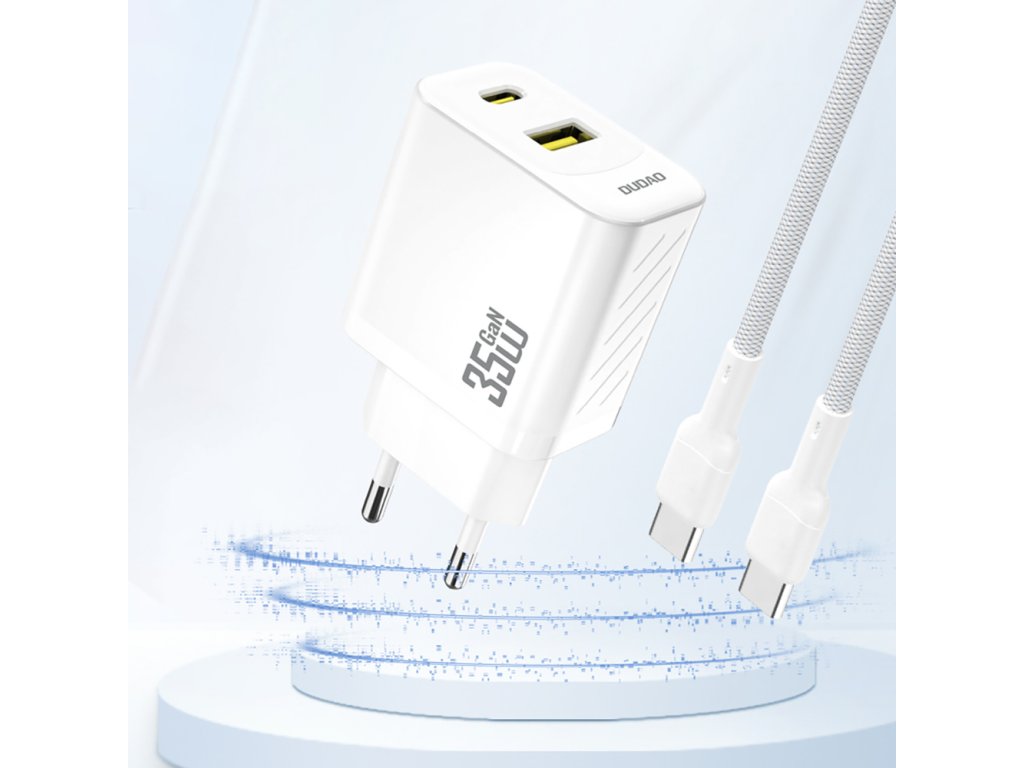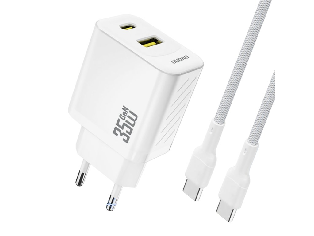 Dudao A27 Max nabíječka do sítě GaN / USB-C PD + USB-A / 35W + kabel USB-C / bílá
