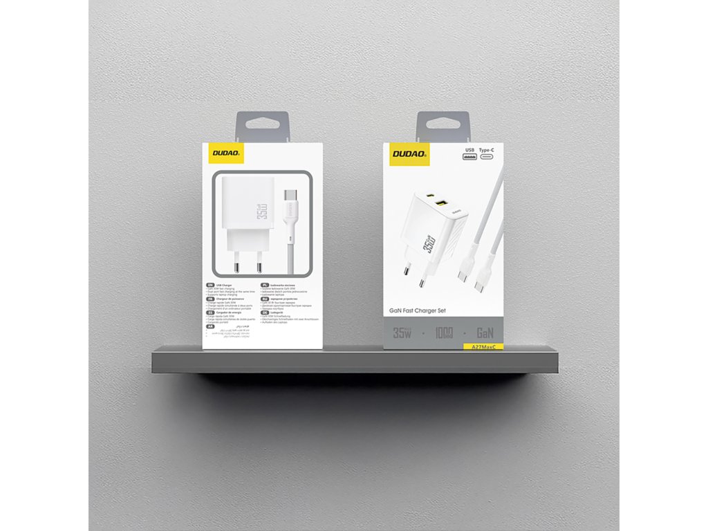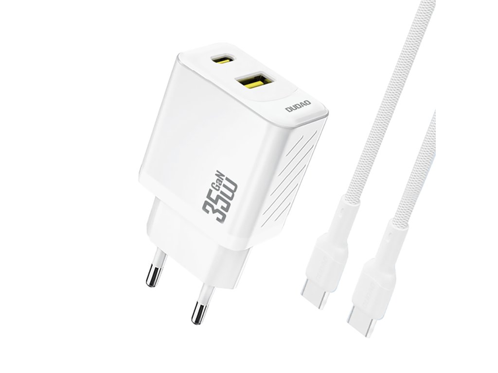 Dudao A27MaxCEU nabíječka do sítě USB-C + USB-A / PD / 35W + kabel USB-C / USB-C - bílá.