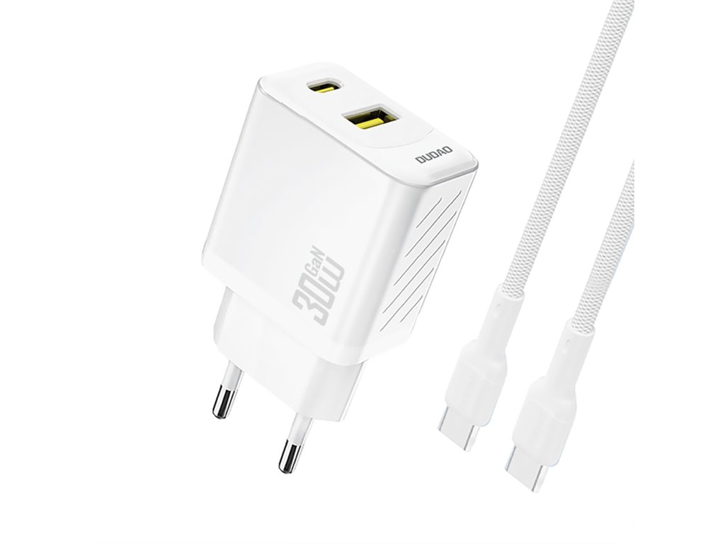 Dudao A27TCEU nabíječka do sítě USB-C + USB-A / PD / 30W + kabel USB-C / USB-C - bílá.