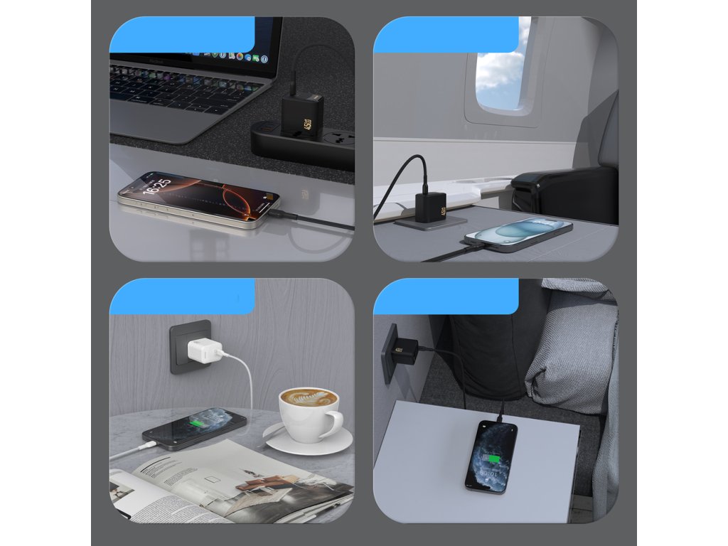 - Kompaktní design: lehká, praktická a elegantní nabíječka pro domácnost, kancelář i cesty.