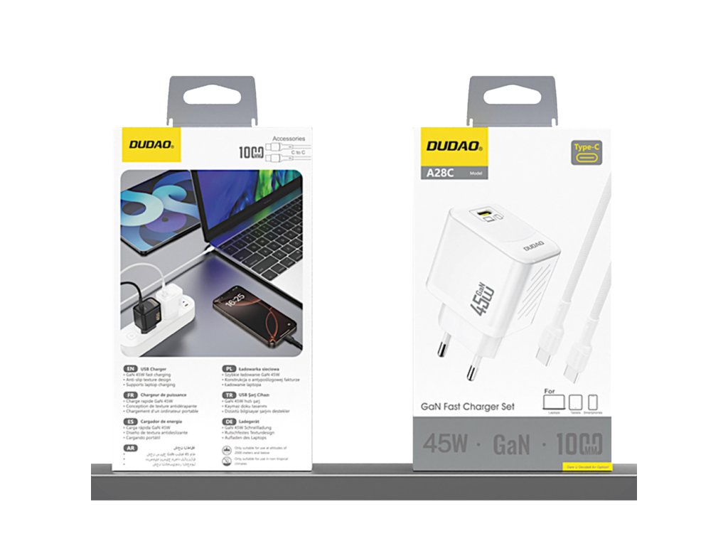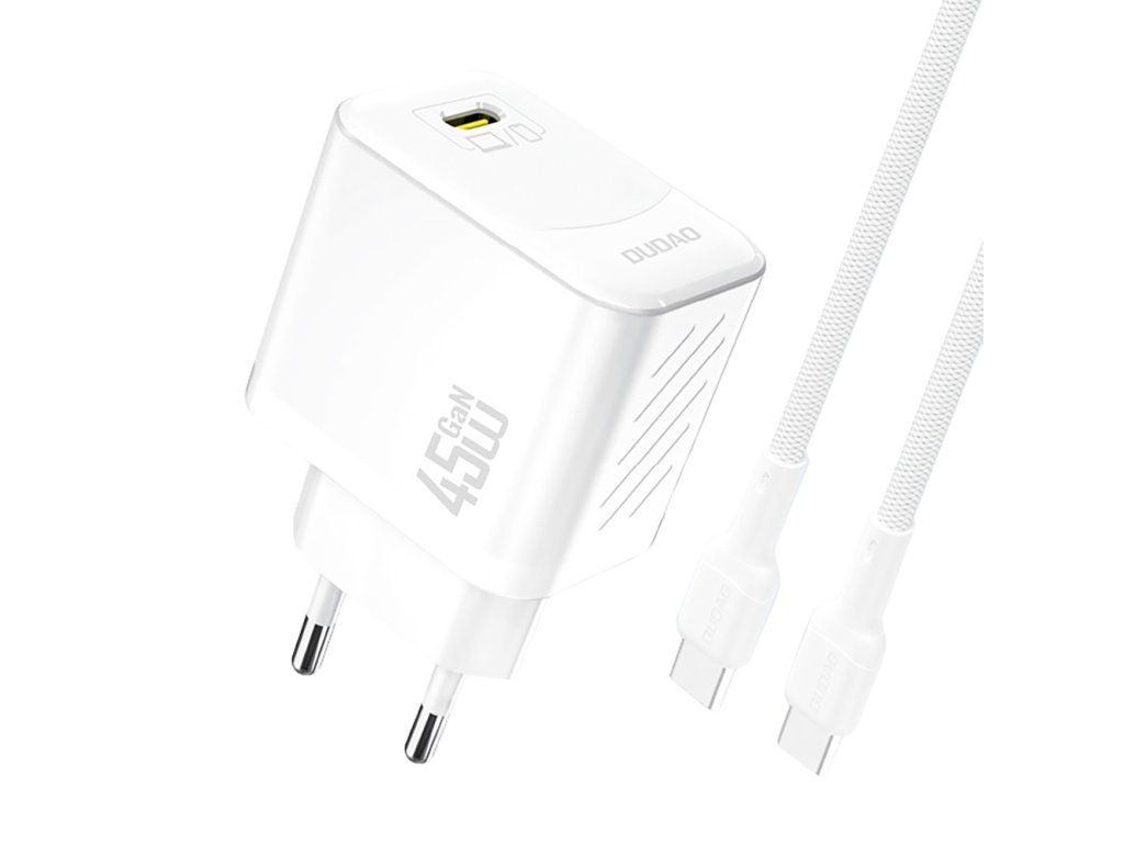 Dudao A28C nabíječka do sítě GaN / USB-C PD / 45W + kabel USB-C / bílá.