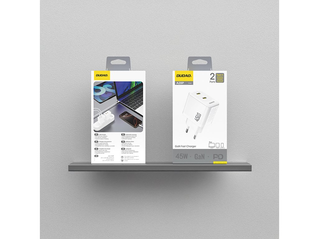 Síťová nabíječka Dudao A28PEU je moderní a výkonné řešení pro rychlé nabíjení současných mobilních i pracovních zařízení. Díky kombinaci výkonu až 45W a pokročilé GaN technologie nabízí vysokou účinnost, stabilní provoz a kompaktní rozměry. Dva USB-C porty umožňují současné nabíjení dvou zařízení bez citelné ztráty výkonu.