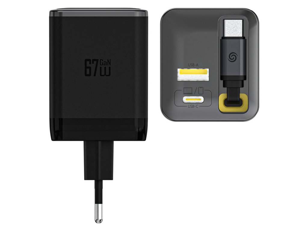 Materiál: nehořlavý plast + GaN komponenty + grafenové chlazení