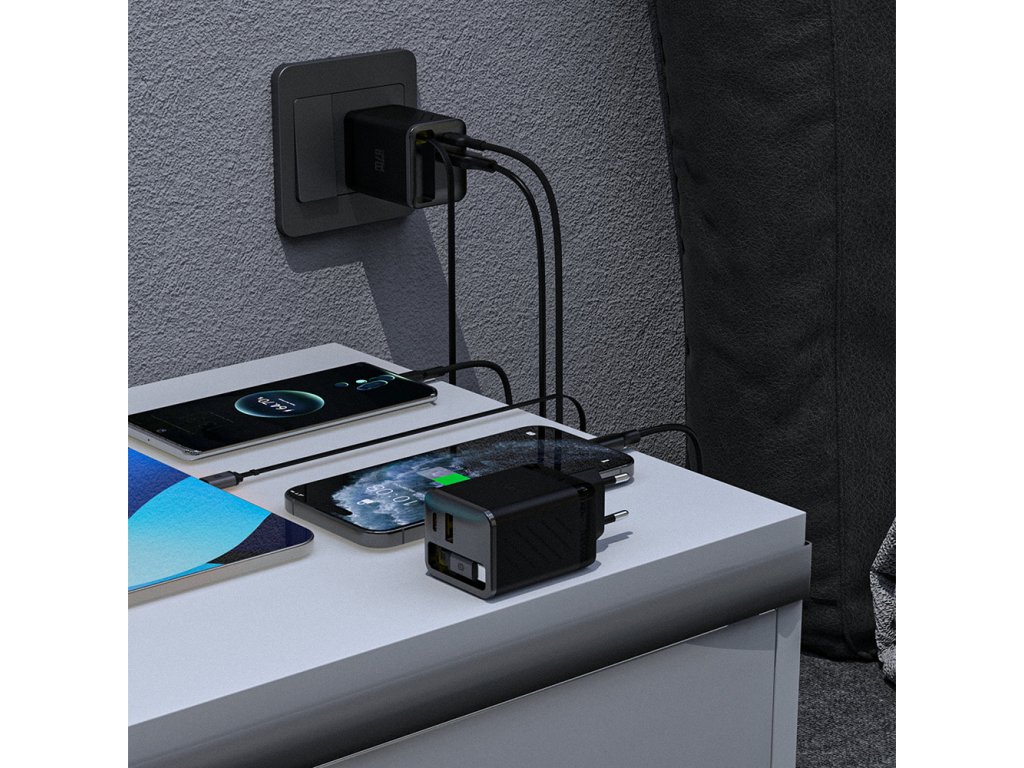 Dudao A67EU je pokročilá 67W GaN nabíječka navržená pro rychlé, bezpečné a pohodlné nabíjení více zařízení současně. Je vybavena třemi porty – USB-A, USB-C a vestavěným, zatahovacím 60cm kabelem USB-C. Technologie GaN v kombinaci s grafenovou chladicí vrstvou pomáhá udržovat nízkou provozní teplotu i při delším nabíjení. Inteligentní systém distribuce energie a 9vrstvá ochrana zaručují bezpečnost a plnou kompatibilitu s různými protokoly rychlého nabíjení, včetně PPS, PD 3.0, QC 3.0, FCP, SCP a AFC.