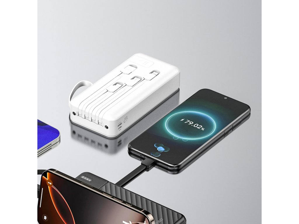 Dudao K11 Pro je praktická powerbanka s kapacitou 20 000 mAh, která kombinuje vysokou účinnost a všestrannost. Díky třem vestavěným kabelům (USB-C, Lightning a micro USB) a portu USB-A vám umožní nabíjet většinu zařízení bez nutnosti nosit další kabely. Díky štíhlému a kompaktnímu designu je ideální pro každodenní použití a cestování. Powerbanka je vybavena bezpečnostním systémem, který chrání zařízení před přehřátím, přetížením a zkratem a zajišťuje tak bezpečné a stabilní nabíjení.
