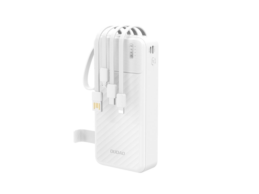 Dudao K11 PRO PowerBanka 20000mAh / USB-A + vestavěné kabely / 10W - bílá.